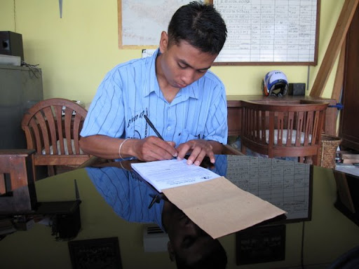 租車的小弟在寫著合約