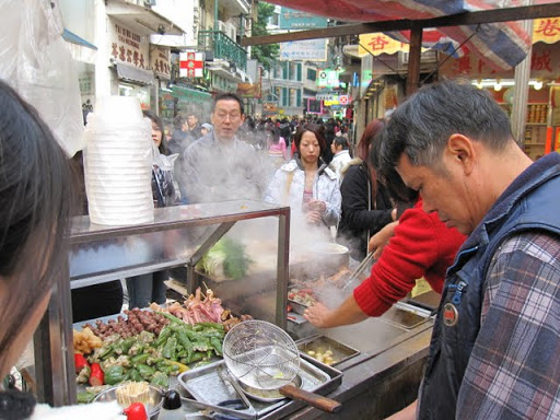 這還是經過大三巴前的小路,田哥說要買這個小吃來吃,我很好奇的問他這是什麼,他也說不出個所以然,看這滿滿的食物,跟滾燙的熱,我一度以為這是滷味,但...吃到東西後(又有點像鹹酥雞)又不像...我也吃不出來是啥米 >"<,這是間生意很好的小店,下次如果有吃過可以試看看是什麼.
